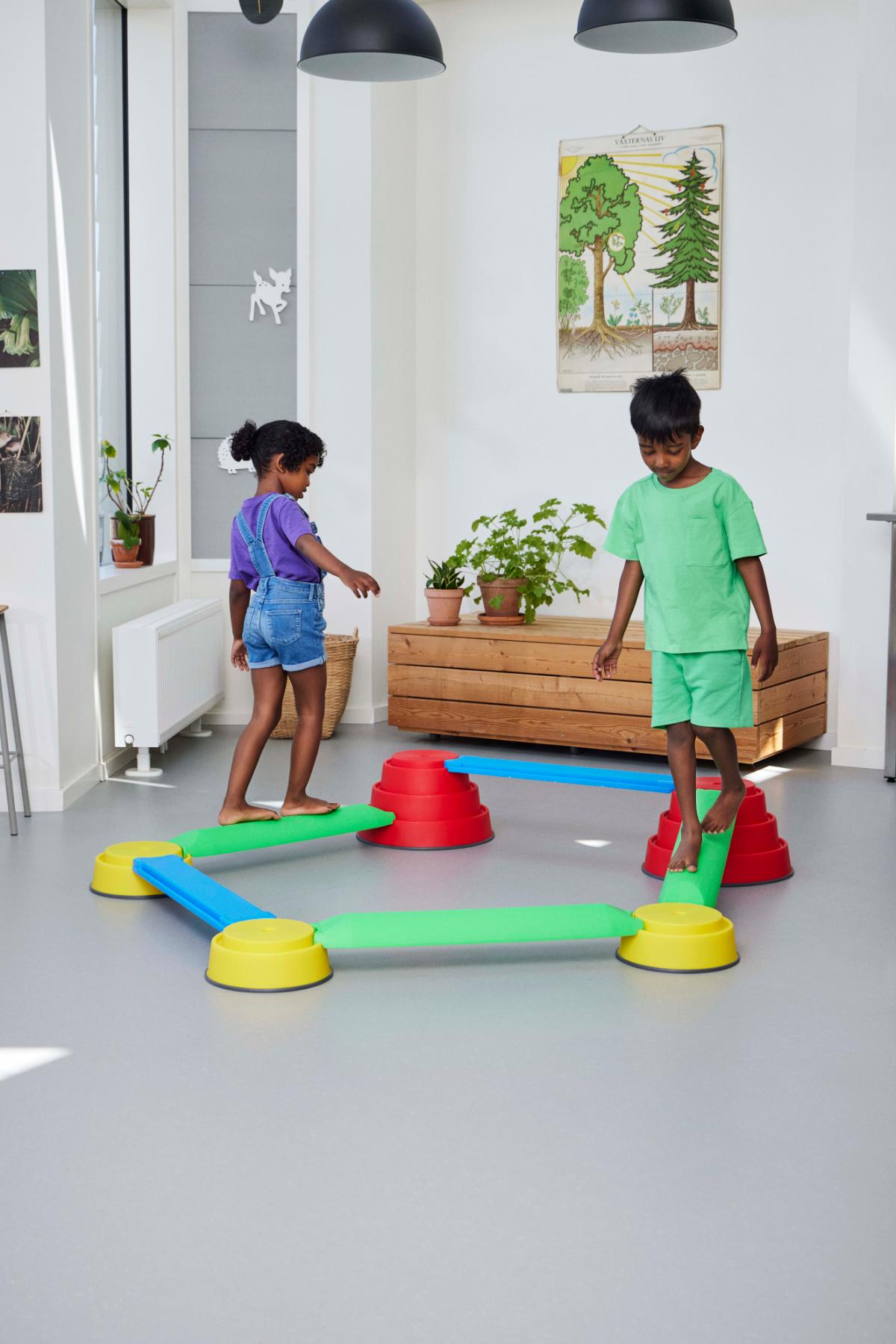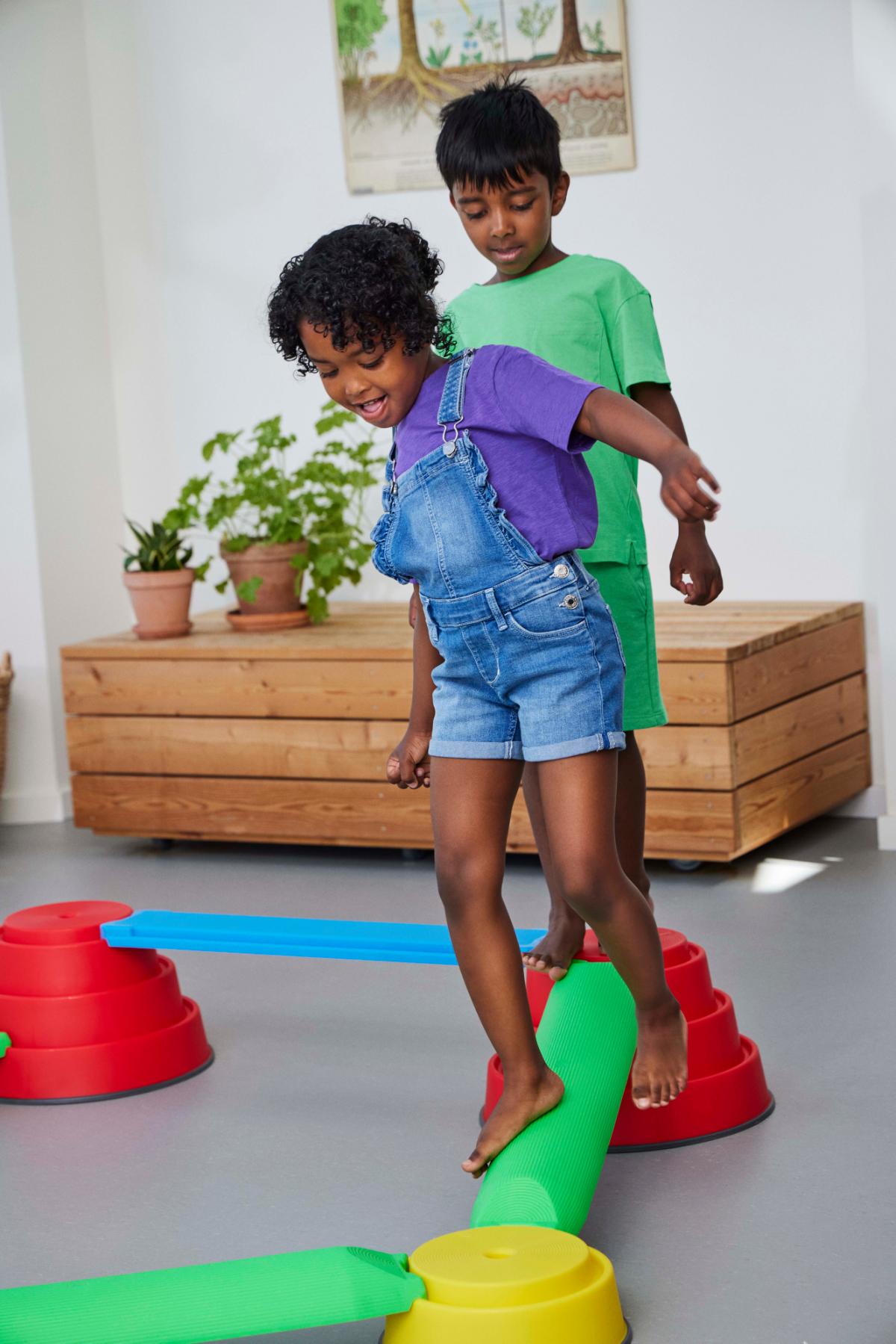 Variabilní systém umožňuje vytvářet různě náročné sestavy podle věku a schopností dětí, čímž podporuje postupný rozvoj pohybových dovedností. Při aktivitě si děti procvičují stabilitu, jistotu pohybu a soustředění, zároveň rozvíjejí kreativitu a schopnost spolupráce při společném stavění.