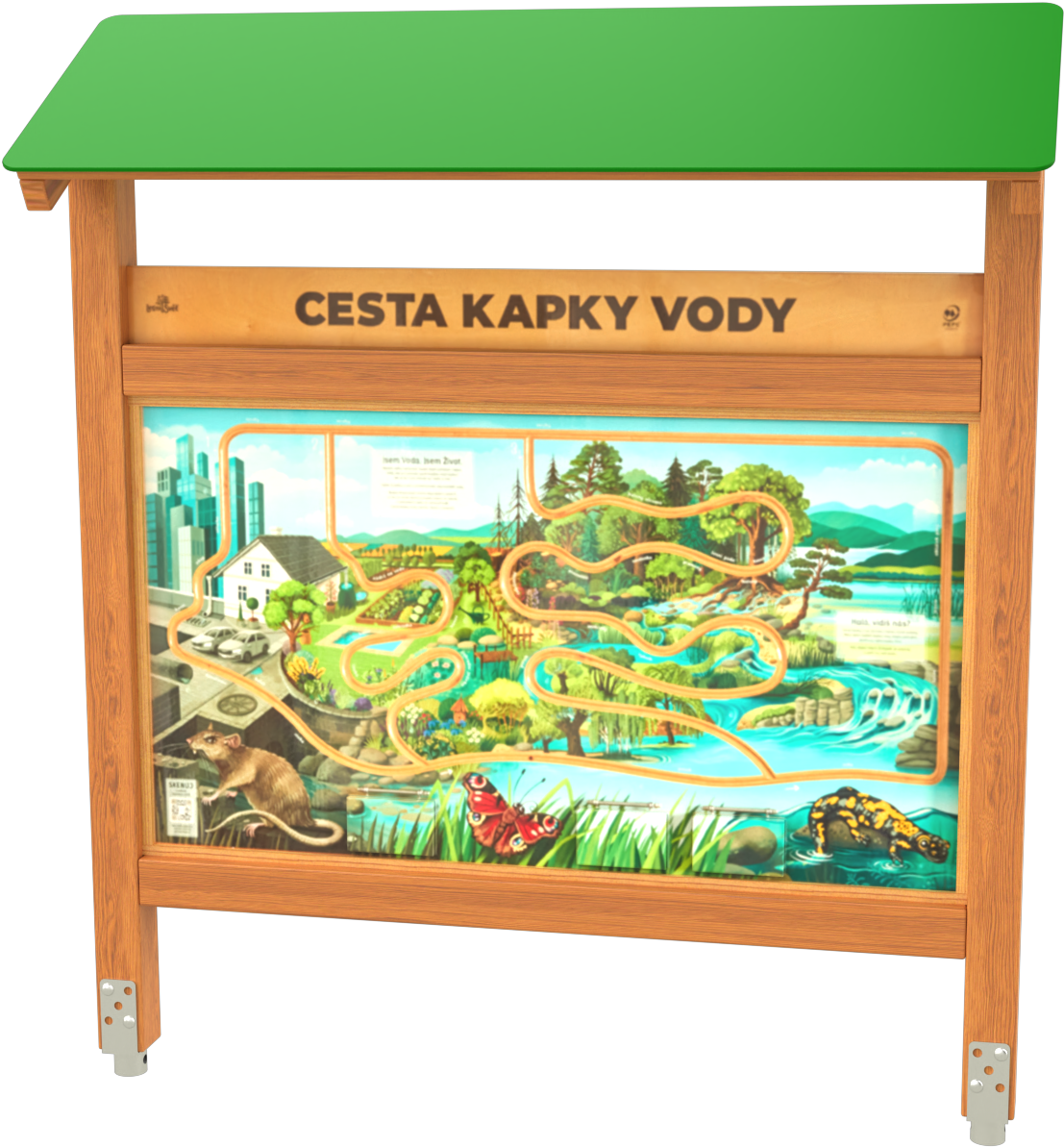 SKU: 790890Naučná tabule CESTA VODY je vyrobena z kvalitního modřínového dřeva. Tento naučný prvek se skvěle hodí na školní zahrady i na dětská hřiště. Naučná tabule vás seznámí s principem zadržování vody v krajině.