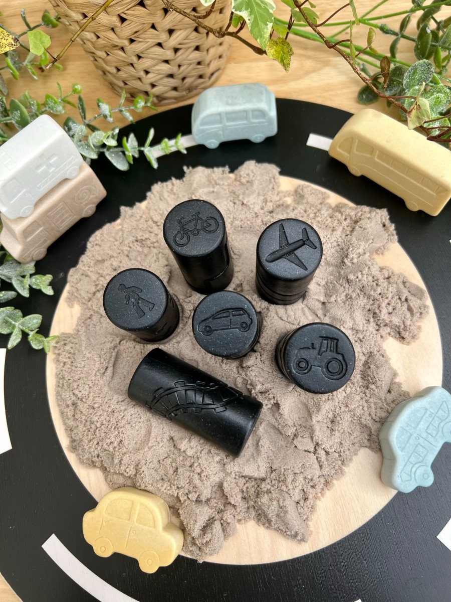 Objevujte svět dopravy s touto sadou odolných obtiskovacích válečků. Při otiskování do modelíny, hlíny nebo písku si děti rozvíjejí jemnou motoriku, učí se pracovat s tlakem a směrem pohybu a přirozeně si rozšiřují slovní zásobu díky vyprávění vlastních dopravních příběhů.