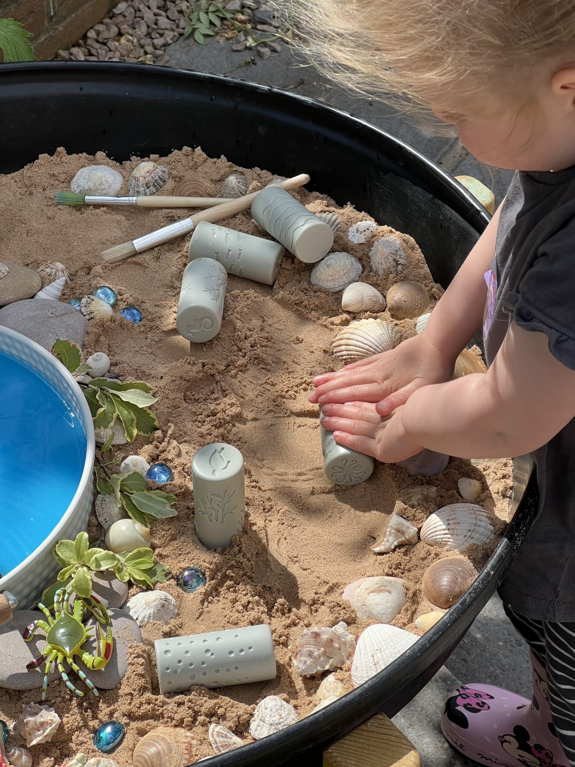 Válečky jsou vyrobeny z odolné kamenné směsi, dobře se drží v malých dětských rukou a snadno se čistí. Jsou vhodné pro každodenní použití doma i venku a představují ideální pomůcku pro rozvoj jemné motoriky, kreativity a předmatematických dovedností.