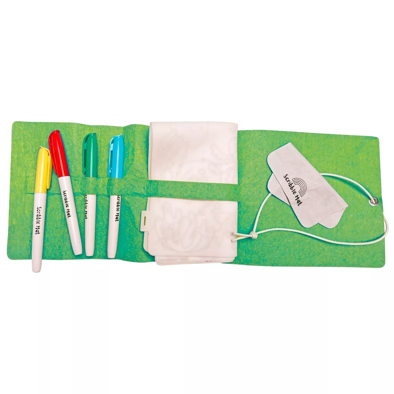 Obsah: 1 omalovánková podložka, 4 nepermanentní fixy, filcové pouzdro.