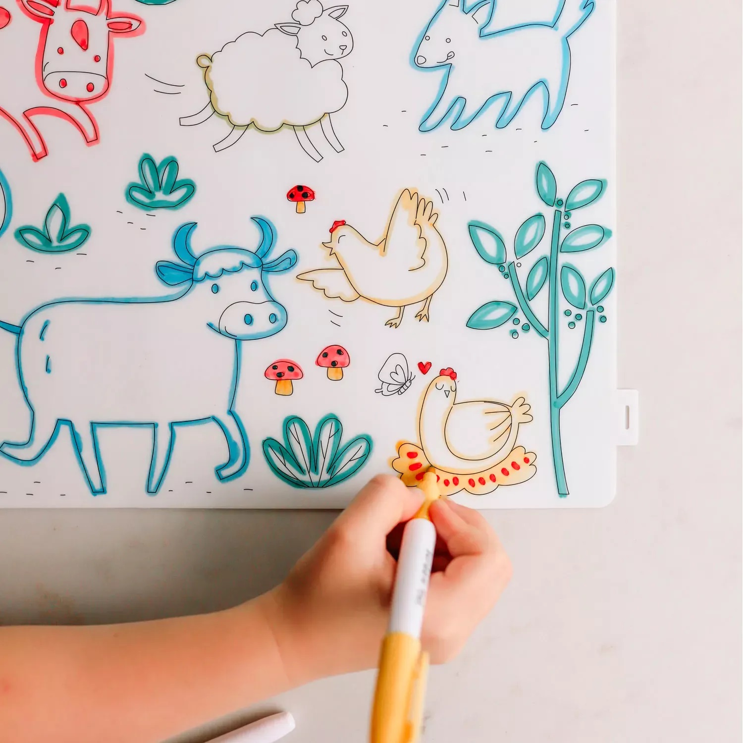 Objevte zábavnou a kreativní aktivitu s flexibilními znovupoužitelnými omalovánkami, které umožňují malovat, otřít a malovat znovu bez papíru. Podložka funguje jako opakovaně použitelná kreslicí plocha, kterou lze snadno srolovat a vzít si ji kamkoli. Z jedné strany je omalovánka s motivy, z druhé strany je prostor pro volné kreslení a vybarvování.