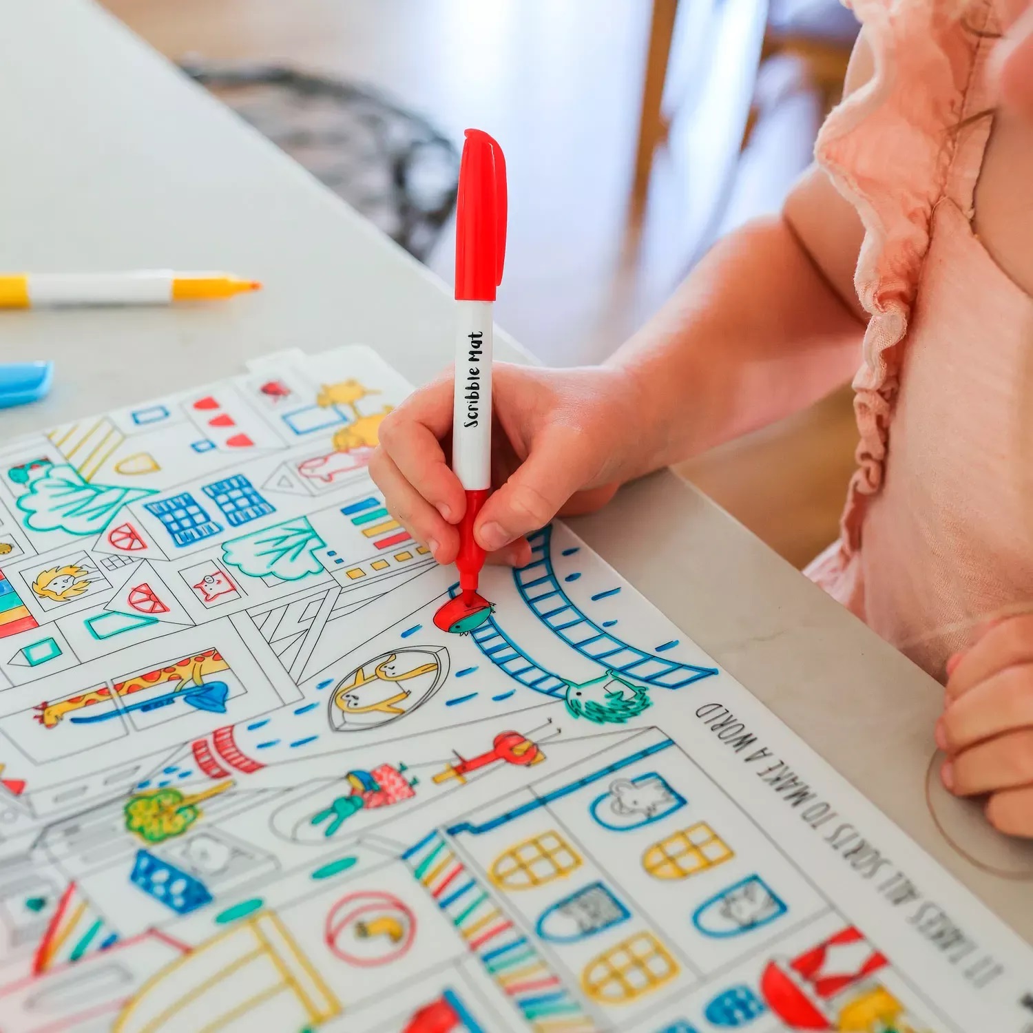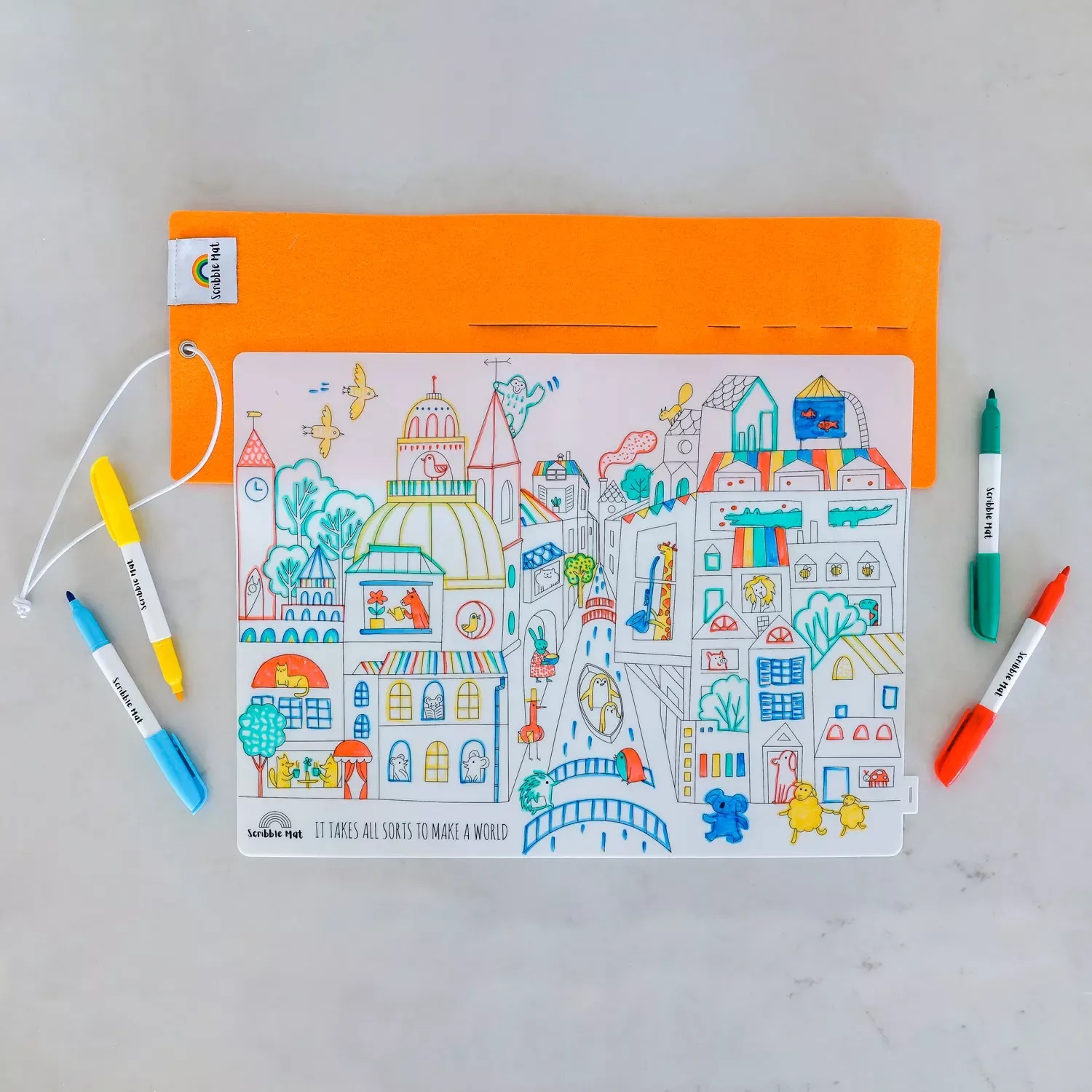 Podložka je krásná, praktická a šetrná k životnímu prostředí a navíc, má přitažlivé motivy, které děti baví. Lze ji používat ve školce, doma, na cestách, v restauraci nebo čekárně – kdekoliv, kde děti chtějí tvořit a bavit se.