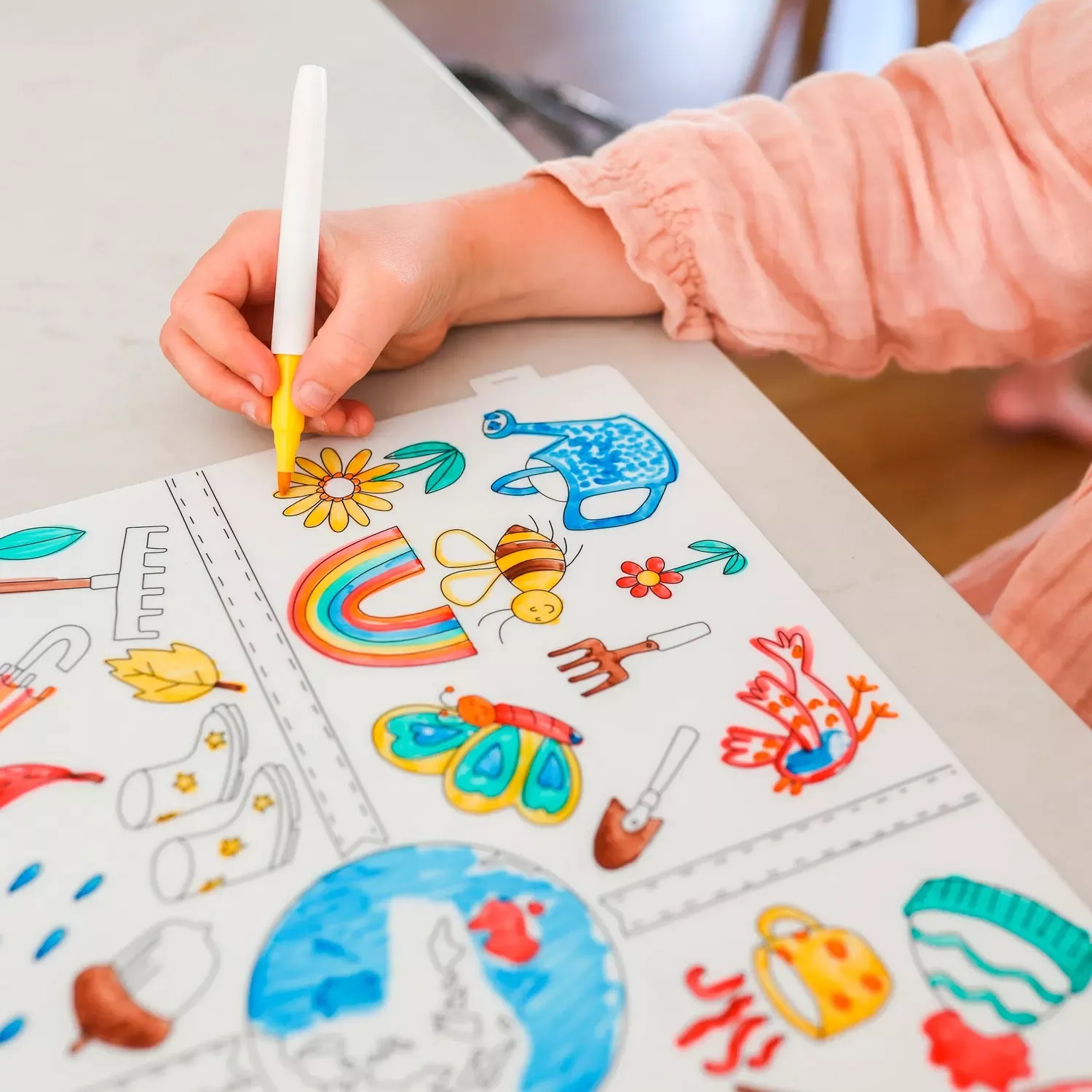 Podložka je krásná, praktická a šetrná k životnímu prostředí a navíc, má přitažlivé motivy, které děti baví. Lze ji používat ve školce, doma, na cestách, v restauraci nebo čekárně – kdekoliv, kde děti chtějí tvořit a bavit se.