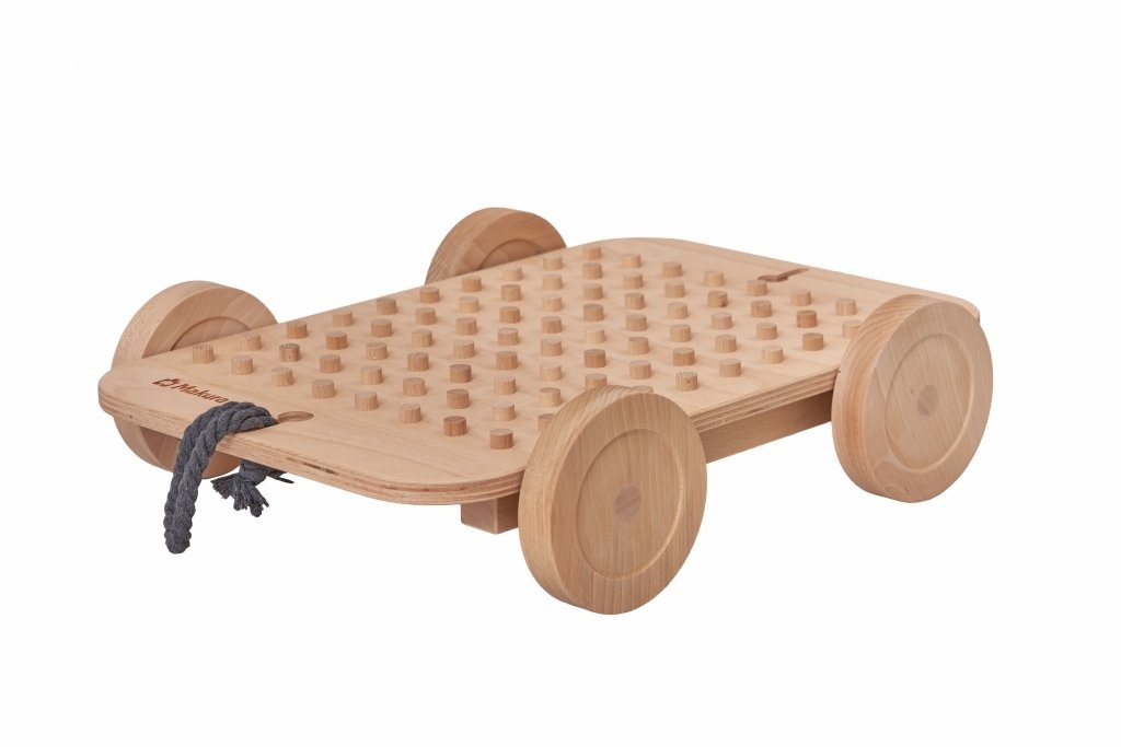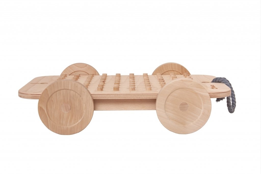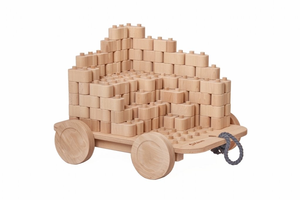 Podvozek je doplňkem ke dřevěné stavebnici Godi Maxi a rozšiřuje možnosti hry i praktické využití.