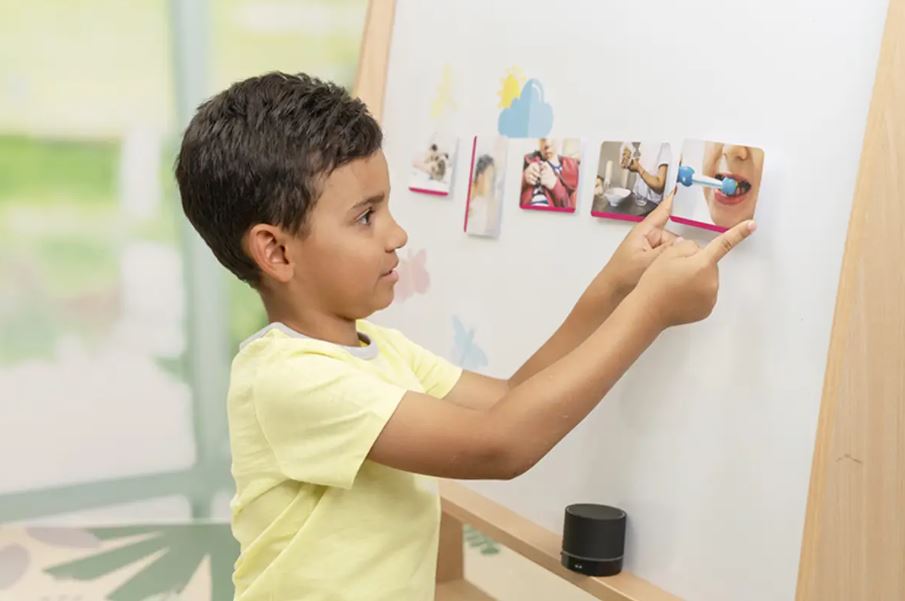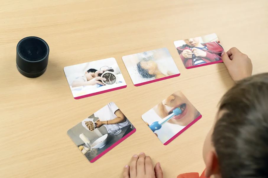Fotografie jednotlivých činností mají na zadní straně magnet, takže je lze použít i na magnetickou tabuli. Zvukové nahrávky jsou součástí pomůcky a můžete si je stáhnout zdarma pomocí aktivačního kódu, který obdržíte s balením.