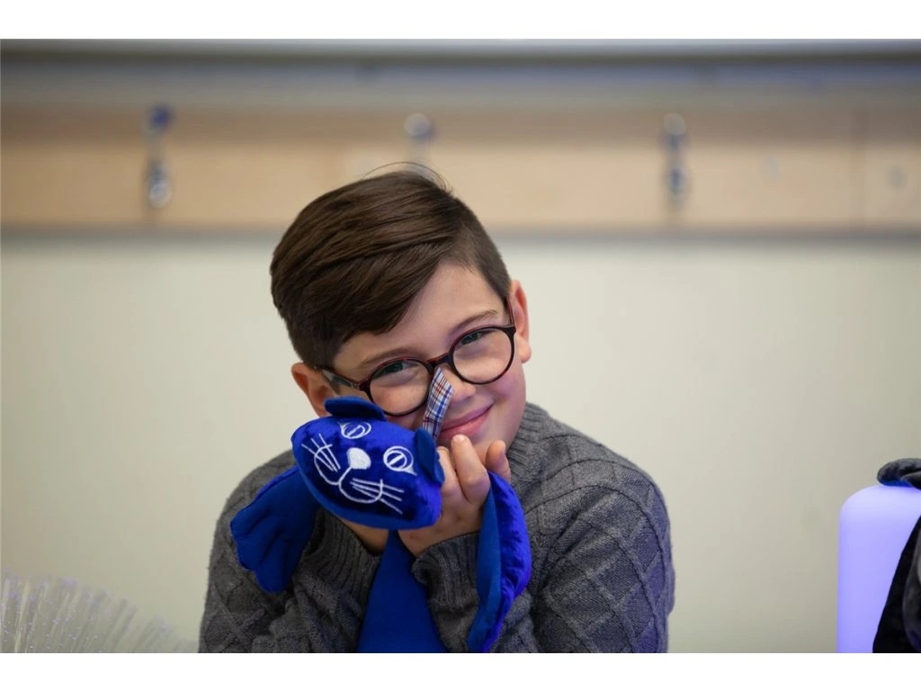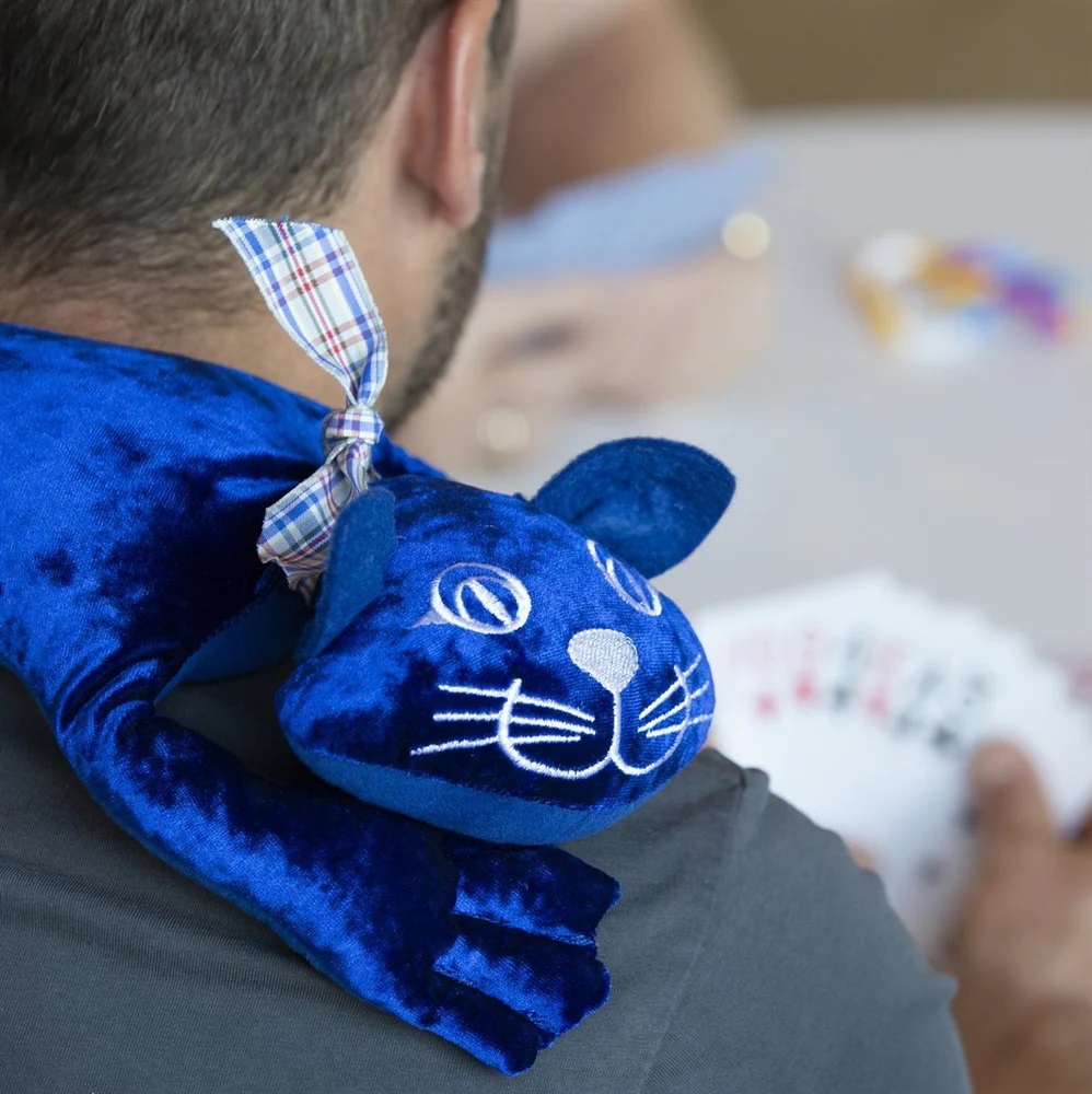 Plyšák má sametově hebký povrch, který je příjemný na dotek. Součástí je také odnímatelná mašle, kterou lze nejen přizpůsobit, ale i provonět oblíbenou vůní, čímž se posiluje celkový smyslový zážitek.