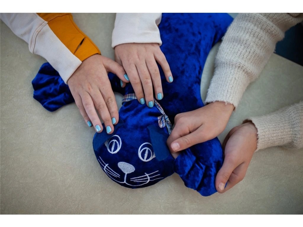Díky své hmotnosti působí na tělo jako jemná zátěž, která stimuluje nervový systém a navozuje pocit klidu a bezpečí. Pomáhá při neklidu, napětí i únavě a podporuje lepší koncentraci a pozornost. Plyšáka lze umístit na ramena, hrudník, záda nebo stehna, kde působí rovnoměrným, příjemným tlakem. Doporučená doba použití je přibližně 15–20 minut.