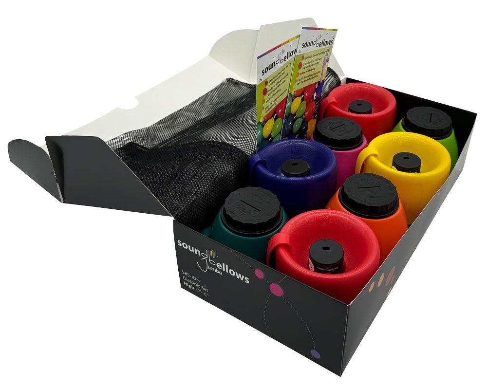 SKU: 621103Diatonická sada Zvukových měchů Jumbo – vysoké C obsahuje 8 tónů v rozsahu C’–C“ a představuje základní diatonickou řadu nástrojů pro společné muzicírování a objevování hudby. Každý měch vytváří tón jednoduchým stlačením, díky čemuž je hra velmi intuitivní a vhodná i pro začátečníky nebo děti.